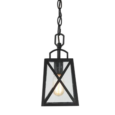 Why not brighten up your house’s exterior and interior with this trapezoid outdoor flush mount pendant light by LNC? This outdoor flush mount pendant light features a sturdy matte black frame with a clear seedy glass shade. The solid aluminum construction and seedy glass add farmhouse vintage appeal chic. The classic hanging lantern with a nautical feel works well in rustic country decors or seaside homes, great for modern, farmhouse, rustic, traditonal or transitional style decor.