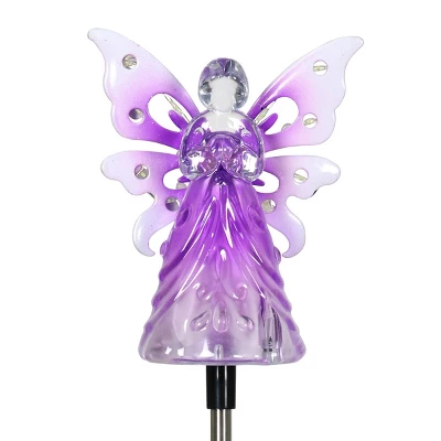 Create a loving and protecting space in your garden with an illuminating solar purple angel garden stake! This ethereal acrylic and metal angel stake adds beauty by day and sparkles by night. Watch as 12 LEDs automatically glow at dusk offering an enchanting decorative light to your landscape. With an energy efficient solar panel, this garden stake will charge in the sun during the day and automatically glow at dusk, captivating your heart. Makes a wonderful gift idea as this charming stake is sure to add a magical and loving touch to your garden!