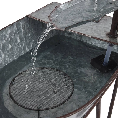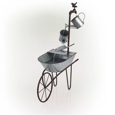 Add a touch of vintage-style whimsy to your lawn with the Alpine Corporation 36″ tall Rustic Wheelbarrow and Watering Can Fountain Yard Decoration. This vintage floor fountain provides a tranquil and rustic addition to your living space, bedroom, porch, backyard, or lawn. Constructed from durable metal with a classic look and realistic textures, the fountain is weatherproof and resilient. This lawn statue will bring a touch of natural beauty to your outdoor space. Featuring a watering can and a wheelbarrow, this fountain adds a classic Americana look to your home’s outdoor space. Relax to the sounds of the soft, natural water flow as it trickles down. Not only will the fountain provide you with serenity, it will also attract birds to your outdoor area, which in turn promotes healthy gardens. This water fountain provides a timeless addition to your indoor living area, courtyard, patio, or yard, and gives your garden visual interest with its vintage style. For quick installation and convenient operating, the fountain includes all necessary parts, as well as a pump, to begin creating an outdoor oasis. This standing fountain measures 29″L x 13″W x 36″H and includes a one-year manufacturer’s warranty from date of purchase. Alpine Corporation is one of America’s leading designers, importers, and distributors of superior quality home and garden decor products. Alpine’s award winning in-house design team continuously develops new and innovative “statement pieces” for your home and garden. Your outdoor living spaces will be the envy of the neighborhood with our wide assortment of fresh, fashionable and contemporary products, from beautifully crafted solar garden stakes featuring patented motion and fiber optic lighting technology to gorgeous glass and glow-in-the-dark birdbaths and feeders.