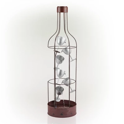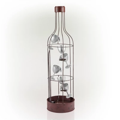 Add a classic Americana feel to your home and outdoor décor with Alpine’s 44″ Tall Indoor/Outdoor Bottle Shaped Water Fountain with Tiering Wine Glasses. This antique-look fountain floor statue will provide a fun and rustic addition to your outdoor or indoor living space. Constructed from durable, weather-resistant iron, this unique lawn statue will provide a tranquil and soothing addition to your home’s backyard. Replicating the shape of a wine bottle with 6 tiers of wine glasses, the fountain constantly circulates water through the glasses. Relax to the sounds of the soft, natural water flow as it streams down. Not only will the fountain add a fun, playful decoration to your yard or home, it makes a great conversation piece with family and friends. This classic and charming floor fountain is a great addition to your courtyard, patio, or yard. The wine bottle fountain gives your garden visual interest with its eclectic design and rustic feel. For quick install and convenient operating, the fountain includes all necessary parts, as well as a pump, to begin creating an outdoor oasis. This standing fountain measures 13″L x 13″W x 44″H to fit almost any outdoor space and includes a one-year manufacturer’s warranty from date of purchase.