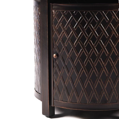 - This premium fire table set has a black antique copper finish applied via durable powder coat
