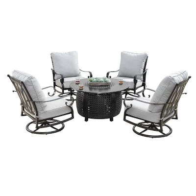 5pc Set With 44" Round Outdoor Aluminum Fire Table & Four Swivel Rocking Chairs & Wind Blocker Lid - Oakland Living -Garden Furniture Store GUEST 4498dca0 a64c 465a 8fbe c6317710aa8e