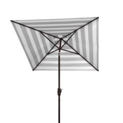 This rectangular crank umbrella was inspired by the sunbathing terrace of Monaco’s Mediterranean overlook hotels. Embracing classic French style, its navy top features a white and navy stripe pattern underneath. For the chic outdoor oasis. This ten foot tall umbrella adds an easy flair of style to any outdoor living space.