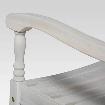 Whether your home overlooks an expansive prairie with wildflowers or not you can still bring the classic charm of wide open, outdoor living with this solid wood rocking chair from Saracina Home. The armrest is curved and detailed in a traditional style. Both the seat of the chair and the back feature a slat style pattern that is timeless and versatile so even if your landscape or outdoor decor changes you can keep being cradled in this weather resistant rocking chair. Properly care for your outdoor acacia furniture by keeping it out of severe weather conditions and applying teak oil every 2-3 months.