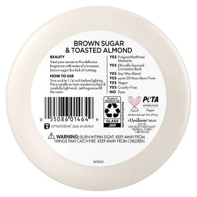 • As a part of the Beloved by Love Beauty and Planet Brown Sugar & Toasted Almond bath and body collection, this vegan candle is an ideal gift to give or treat yourself.