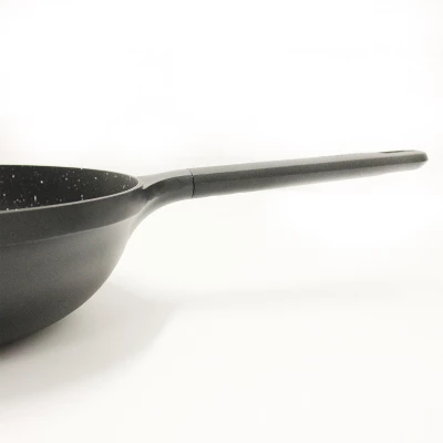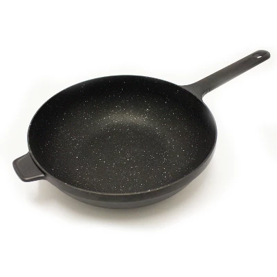 Add your favorite vegies, some chicken and a tasty sauce in this stir frying pan and you’ve got a delightful meal! This aluminum pan distributes heat quickly and evenly while the flat bottom ensures that all your stir fry ingredients are cooked equally. The non-stick coating means you need less to no oil, perfect for when you want to cook healthily.