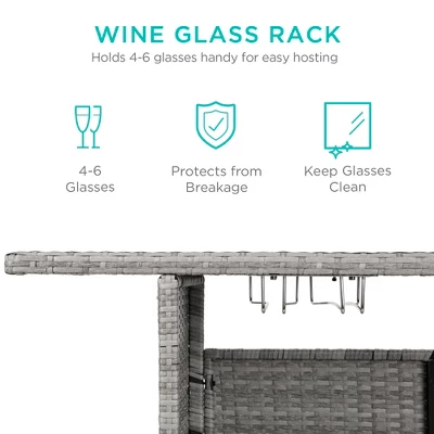 Add extra class to any indoor or outdoor gathering with this wicker bar table. The perfect place to store wine glasses, an ice bucket, and more, it allows you to host family and friends with convenience. Enjoy countless evenings with good drinks and better company!