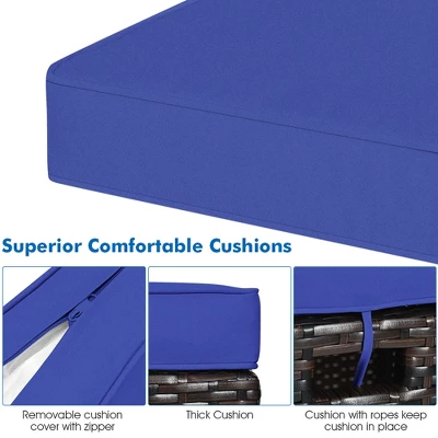 - Upgraded Comfortable Cushions: The ottoman comes with 2 soft cushions which is filled with premium sponge that is cozy and not easy to collapse. And the cover of cushions are made of waterproof and fade resistant polyester, so the cushions suitable for outdoor use. More, the cushion is equipped with smooth zipper for removable and washable.