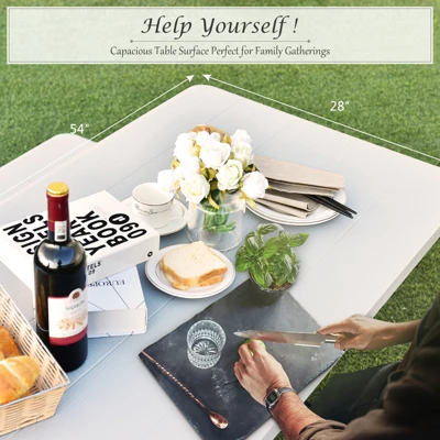 All Weather Resistant and Perfect for Outdoors:As the outdoor picnic table set, it also has good wear resistance, tough and cold resistant, ideal for any weather and any place. With UV-protection table surface, it ensures the durability and will not crack, chip or peel.