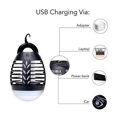 - CHARGES VIA USB – The Bug Zapper Light works with any USB port. Simply attach one end of the micro USB cable to the Bug Zapper light and the other end to a power outlet.