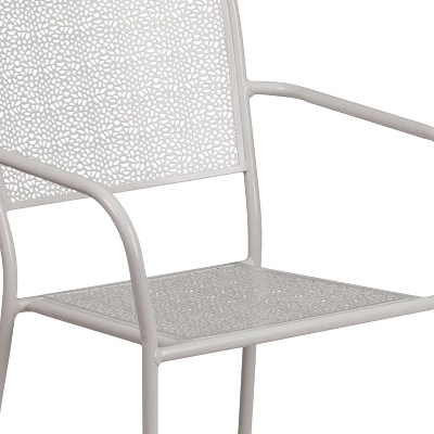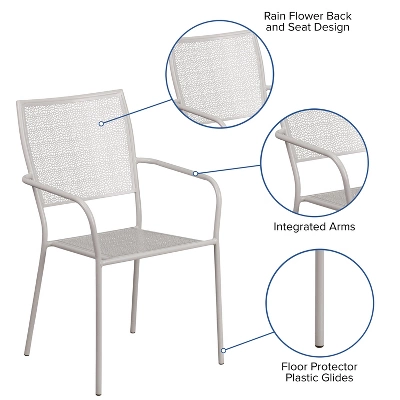 Add color to your patio furniture with this black patio chair. People are moving towards colorful outdoor furniture to furnish their outdoor living spaces and you should too. This stackable patio chair is a rare find that is crafted with transparent rain flower print on the back and seat. The steel framed patio chair is a solid chair that is built to last on the patio of your home and restaurant. During wet weather months, store these chairs vertically, they can be stacked up to 8 chairs high or bring them indoors. Purchase the matching black square or round patio table to complete your outdoor dining set. Additional Features: Powder Coated Frame Finish, 1.2mm Tubular Frame, Floor Protector Plastic Glides, Designed for Commercial or Residential Use