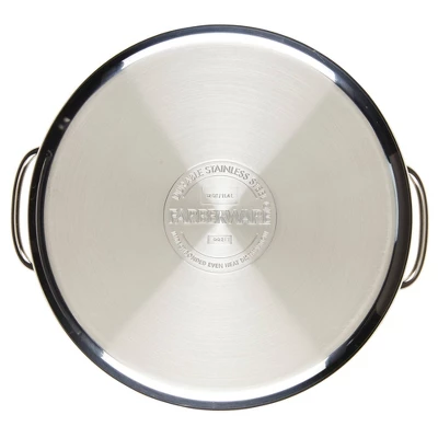 With a Farberware Classic Series Stainless Steel Stockpot in the kitchen, it’s easy to create memorable family feasts and crowd-pleasing meals. This extra-large 12-quart stockpot is perfect for king crab legs for a dinner party, or for simmering a huge batch of spicy chili for game day. Farberware has been trusted for over 100 years, and this stockpot continues that tradition for a new generation. A full cap base featuring a thick aluminum core surrounded by stainless steel provides rapid, even heating on any stovetop, including induction. Heavy-duty stainless steel is polished to a mirror finish for a classic touch, and the comfortable stock pot handles with iconic styling provide a confident grasp. This large stockpot not only works great for boiling lots of spaghetti noodles for a family get-together, it also can be used to brine a holiday turkey prior to roasting. A self-basting stainless steel lid helps seal in heat and moisture, and this stockpot is dishwasher safe and oven safe to 350°F. The extra-large stockpot makes an excellent companion piece for any Farberware collections cookware set. Feed a crowd with the meals created in this generous Farberware Classic Series Stainless Steel 12-Quart Covered Stockpot.