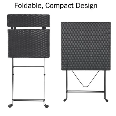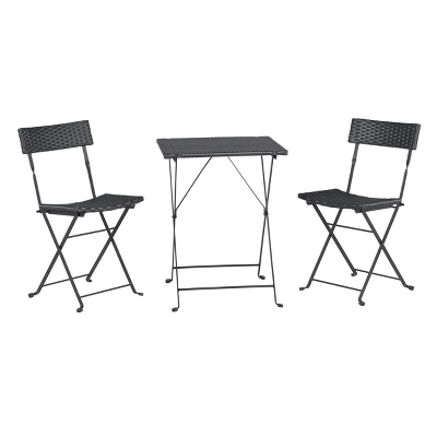 - STYLISH FUNCTION – The black rattan lends a contemporary look to this charming bistro table set. This functional seating combo features a versatile neutral design that will coordinate well with a variety of outdoor décor styles.