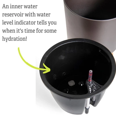 - HIGH-QUALITY CRAFTSMANSHIP: With a durable finish and tapered, wooden legs, it adds a touch of modern styling to your space. With this self-watering planter, an inner water reservoir keeps soil consistently moist, so plant roots always get what they need. Refills are easy too — the water level indicator tells when it’s time for a top up.