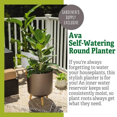 - PRODUCT DETAILS: Ava Self-Watering Round Planter. A compact planter made for indoor and outdoor use. Grow flowers or veggies, or grow both! With two separate planting compartments in the same self-watering planter to provide even moisture easily & efficiently.