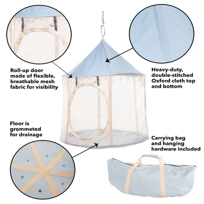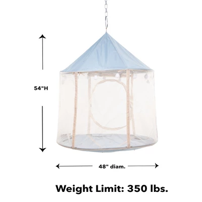 - Hanging tent measures approx. 54″H x 48″ diam. and supports up to 350 lbs.