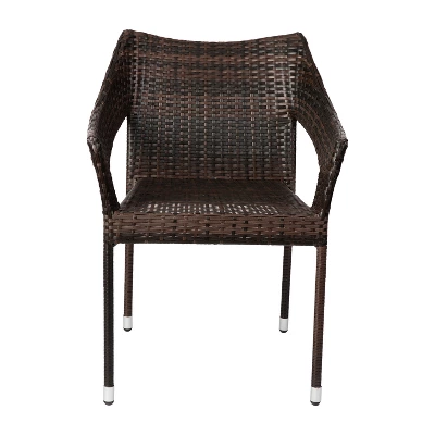Classic style meets modern functionality in this patio dining chair. Crafted with durable, all-weather materials, this is the perfect solution to your indoor and outdoor seating needs. Traditional woven PE rattan is supported by a reinforced steel frame for reliable strength and lasting durability. With no assembly required, a lightweight stacking design and easy maintenance, this dining chair arrives ready to be enjoyed.