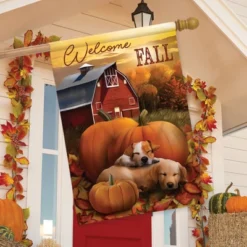 Welcome Fall Puppies House Flag Autumn Pumpkin Farm 28″ X 40″ Briarwood Lane