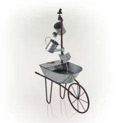 36″ Metal Watering Can Wheelbarrow Fountain – Alpine Corporation