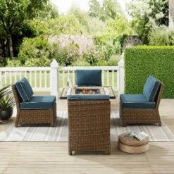 Avondale 3pc All-Weather Wicker Patio Chair Set W/ Fire Pit – Dark Brown – Christopher Knight Home