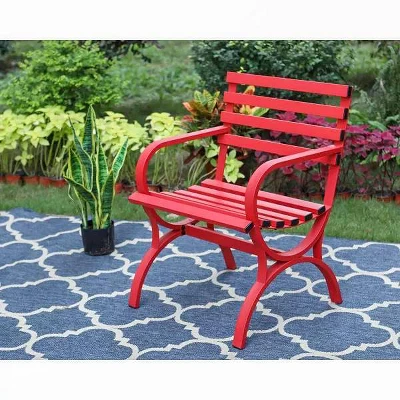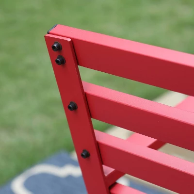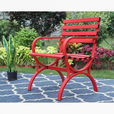 Bright colors and modern design,this furniture will be a pretty addition to your home or garden.The seat is composed of 6 steel slats to provide strong support.It is an ideal option for your leisure time outdoors.