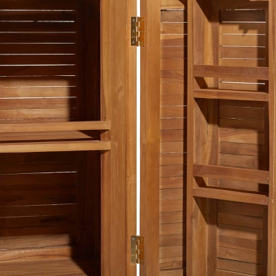 Make your friend thirsty with envy with this outdoor bar cart. Looks stylish in your living room or kitchen as a serving tray or as a decor stand. Use this table as the centerpiece to your home bar in your outdoor and garden setting. This accent furniture features a 2-door cabinet. This item ships in 1 carton. Item measures 37.625″L x 20.5″ W x 42.375″ H when closed.. Suitable for indoor use only. Maximum weight limit is 100 lbs. Made in Indonesia. This is a single bar. Traditional style. Teak wood naturally retains its oil, making it water-resistant and durable for long term use. We recommend to use clear teak oil with strong UV protection to ensure longevity. Brown bar can hold 3 average wine bottles.