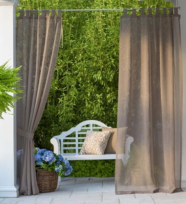 Shenandoah Outdoor SunSpun Tab Top Outdoor Curtains are light and airy for a beautiful look on porch, covered patio, veranda, sunroom and more. Hang these indoor/outdoor semi-sheer woven curtains anywhere you want soft, filtered light and privacy. They’re easy to hang and open/close with their hook-and-loop tab tops. Easy care, 100% polyester panels are water, mildew and UV resistant. Each panel includes a pull wand, tie back and bottom anchor grommet. Panels sold individually. Imported.