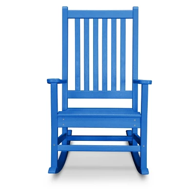 Take it easy with the St. Croix Rocking Chair by POLYWOOD. This comfortable rocking chair is just what you need to bring timeless appeal to your front porch with its wide, contoured seat and reclined backrest. Gather a few of these outdoor rockers in your space to create an inviting spot where family and friends can relax season after season.