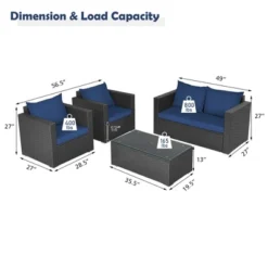 Costway 4PCS Patio Rattan Furniture Set Cushioned Chair Sofa Coffee Table White/Navy/Turquoise/Red