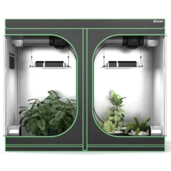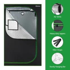 Costway 4×8 Grow Tent, 96”x48”x80” High Reflective Mylar W/Observation Window GrayBlack
