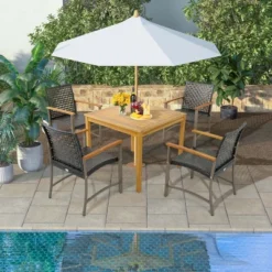 Costway Set Of 4 Patio Dining Chairs Outdoor Wicker Armchairs With Acacia Wood Armrests