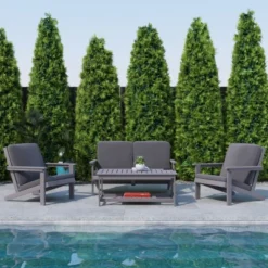 Flash Furniture 2 Pack Charlestown All-Weather Poly Resin Wood Adirondack Chairs With Side Table