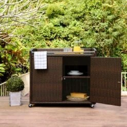 Teamson Home 39.5″ Veronica Rolling Outdoor PE Rattan Bar Cart With Storage, Brown