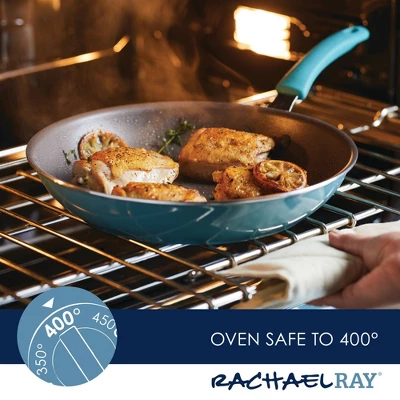 - MADE TO LAST: Durable, high performance nonstick frying pan from Rachael Ray is oven safe to 400°F and backed by a Limited Lifetime Warranty.