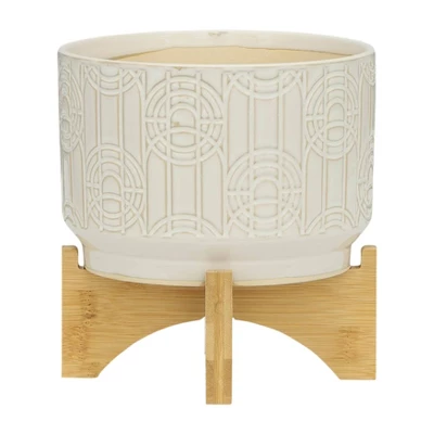 Ceramic planter with circles design on the exterior. It has a non-glossy finish and the wood stand is glued to the planter. This beautiful piece will be a great addition to your living room or entry way.Sagebrook Home has been formed from a love of design, a commitment to service and a dedication to quality. They create and import fashion forward items in the most popular design styles. Backed with years of experience in the textile field, They are now providing a complete Home decor story. the combination of wall decor, furniture, lighting and Home accessories are all coordinated with textiles to provide a complete Home look. Sagebrook Home is committed to providing the best Home décor and accent pieces at value prices.