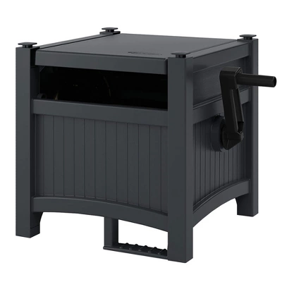 Wind up that garden hose of yours and keep your yard looking neat and tidy with this Suncast CPLPHH100D Hideaway 100′ Resin Garden Hose Reel for 5/8″ Hoses in Cyberspace.Convenient and mobile, this Suncast 100-Foot Resin Hose Reel Hideaway looks as pretty as your plants when it’s posted up next to your lawn and garden, and provides a kink-free solution for easy access. The patented Easylink system makes sure a watertight connection is between the hose reel and hose, with a strong and reinforced system. Comes equipped with a stabilizing footrest and crank handle to help keep winding and unwinding easy and organized. The sturdy, resin construction ensures your 100-foot vinyl hose is wound up securely and keeps your outdoor space decluttered while weathering the outdoor elements. This garden hose reel comes fully assembled so you can get to watering your garden, filling up that pool, or washing your car right away.Spruce up your outdoor space, patio, or garden and conceal the garden hose with the Suncast CPLPHH100D Hideaway 100′ Resin Garden Hose Reel.