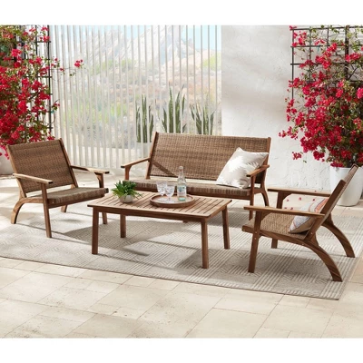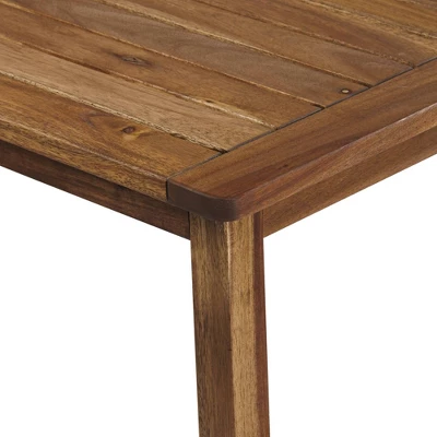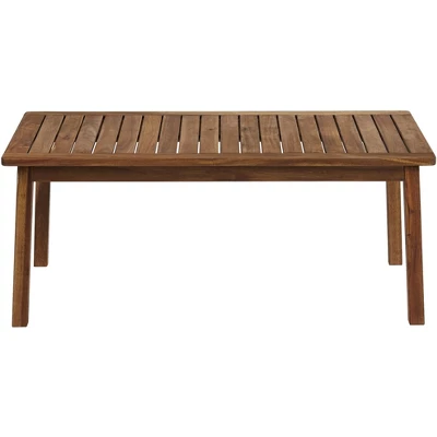 Gather outside with family and friends around this transitional wood coffee table. An oil-based polyurethane finish covers the Acacia wood for a timeless design. This versatile design is perfect to place outside in warmer weather and inside during colder times.