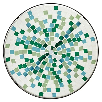 - Aqua blue mosaic inlay top. Black finish metal construction. Gracefully curved legs.
