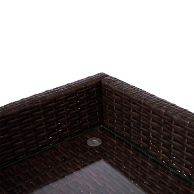 • Sturdy, dark brown UV-protected PE Rattan wrapped around a steel frame with an easy-to-clean 0.5 mm” glass tabletop