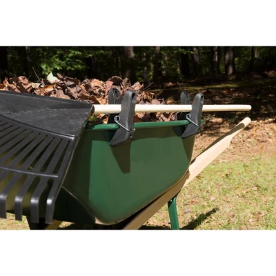 The Worx WA0235 Aero cart Universal Wheelbarrow Stick Tool Holders adds another dimension to how you do yard work. You can now connect your shovel, rake or any other stick tool to the side of your wheelbarrow, so they are with you as you move around the yard from task to task. They simply clamp on via a spring clamp mechanism and those springs also hold in the stick tools. The stick tool holders can work on the sides of the Worx Aero cart as well as any other wheelbarrow by simply removing the adapter with one screw. These tool holders will save you a trip, the frustration of tools sliding around in your bucket and help make sure they go anywhere you do with your wheelbarrow.